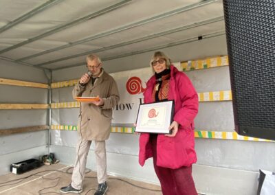 Søndag den 8. december 2024 uddelte Slow Food Danmark for 3. gang diplomer til prisværdige virksomheder, som vi gerne vil give en skulderklap. Vi nærmer os en tradition! Årets præmier går til tre producenter, som vi synes gør en forskel ift vores ambition om god, ren og retfærdig mad til alle. De er mere end fødevareproducenter – de formår på hver dages måde at skabe stærke fællesskaber omkring maden og dyrkningen. Et aspekt, som er meget vigtigt for forpersonen i årets jury, Sandra Villumsen: